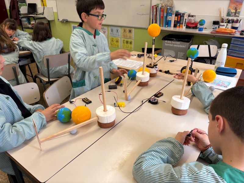 Per conèixer informació hem estat llegint textos i responent preguntes que ens plantejaven. També vam poder conèixer els moviments de la Terra observant una maqueta que representava el moviment de translació; així vam poder descobrir com es creen les estacions de l’any. Un altra activitat força interessant que vam fer va ser una maqueta robotitzada del sistema Sol-Terra-Lluna. Vam construir-ne quatre i vam utilitzar esferes de poriexpan, fang, llistons de fusta i un circuit elèctric que consistia en una pila, un interruptor, un motor i una roda, tot plegat unit amb cables. A més d’això, vam fer un activitat molt divertida que consistia en el repte de rescatar la Terra i a partir de lectures de QR, visionat de vídeos i de respondre a diverses qüestions, vam ser capaços de fer unes promeses ecològiques i van atorgar-nos finalment el diploma de Guardians del Planeta Terra. Va ser molt emocionant! Al final, vam fer algunes activitats de síntesi com uns Kahoots i una prova escrita.